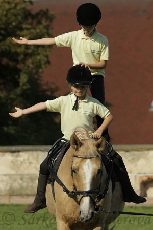 Děti jezdí na madlech postupně ve všech chodech koně, podle svých momentálních schopností. Provádějí různé voltižní cviky – upažení, klek, lehají si na koně atd. Toto cvičení především odbourává strach z koně a z výšky, výrazně zlepšuje koordinaci, motoriku a držení těla dětí. Také jde samozřejmě o fyzický kontakt dítěte s koněm a navázání vztahu ke koni. V hodině kroužku je max. 10 dětí.